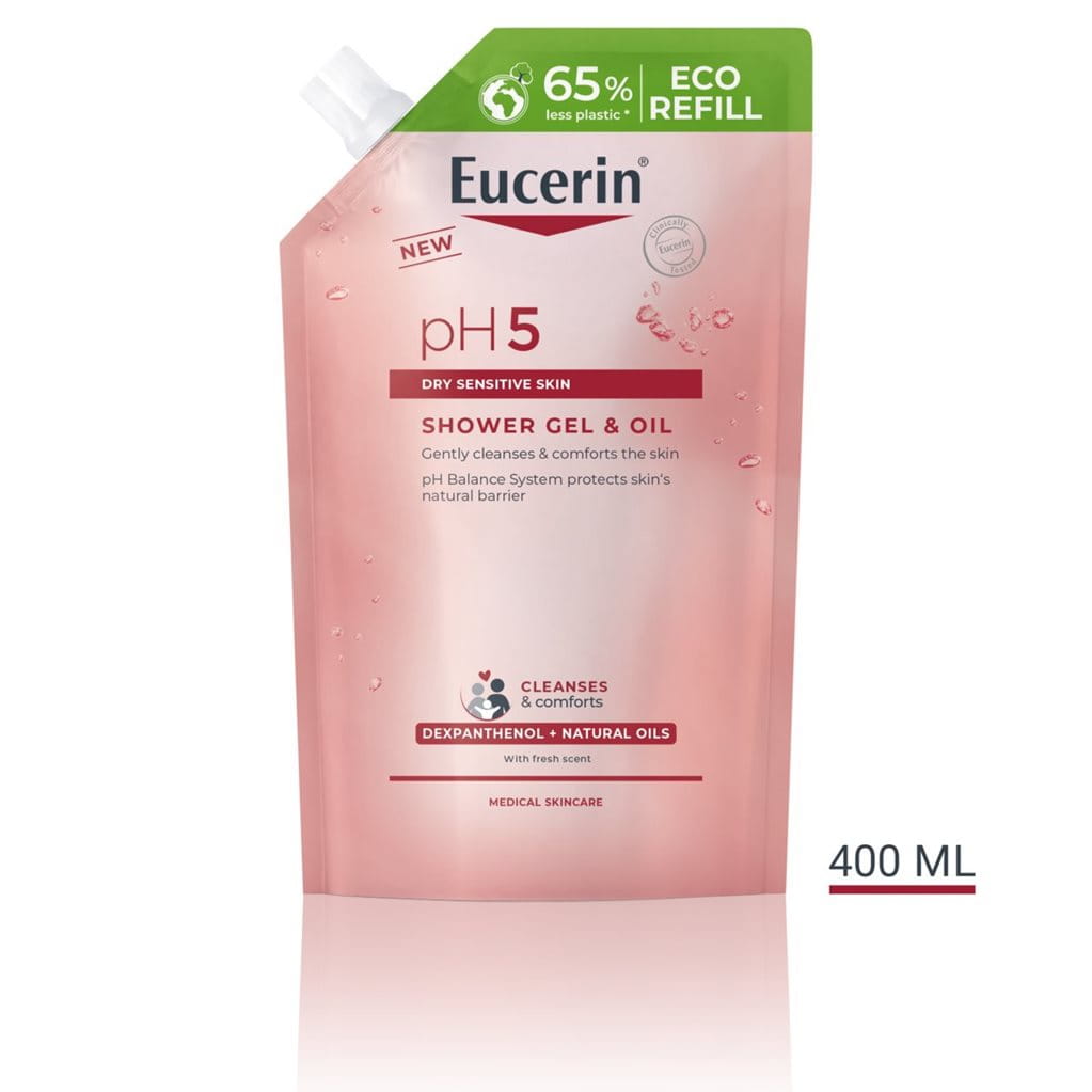 The Eucerin pH Shower Gel & Oil as well as all pH5 cleansers and moisturizers contain mild ingredients that have been clinically and dermatologically tested and proven to restore skin’s optimal pH and protect its natural defenses, making it more resilient and less sensitive to environmental triggers.