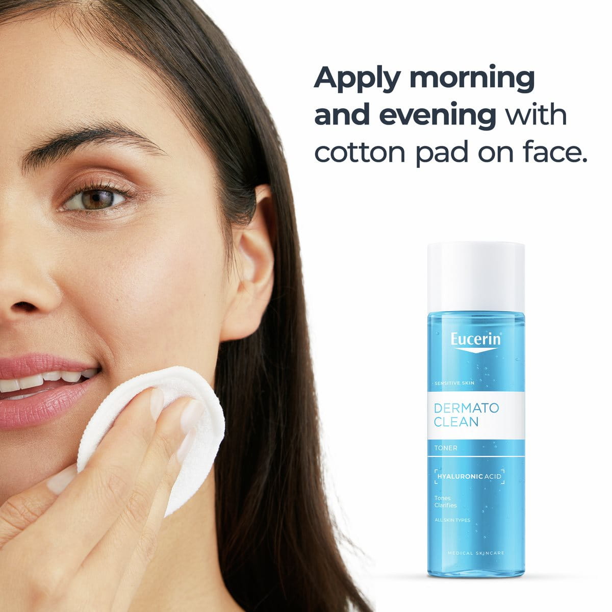 Eucerin® DermatoClean Toner is a mild & effective facial toner that removes all residues from cleansers & water. The formula with Hyaluronic Acid, keeps the skin moisturized and does not dry out the skin. Free of fragrance.