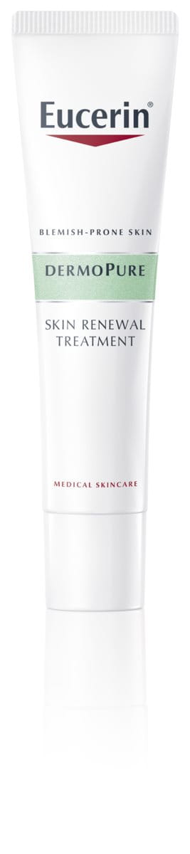 The innovative Eucerin DERMOPURE Skin Renewal Treatment has been specially formulated to reduce the appearance of pimples, papules and pustules. It is suitable for mild to moderate forms of acne and contains: