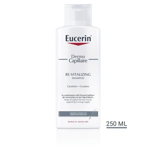 - Your hair loss has a genetic cause: When used in combination with Eucerin DermoCapillaire Re-vitalizing Scalp Treatment, Eucerin DermoCapillaire Re-vitalizing Shampoo has been proven to strengthen the hair root by supporting its energy supply.